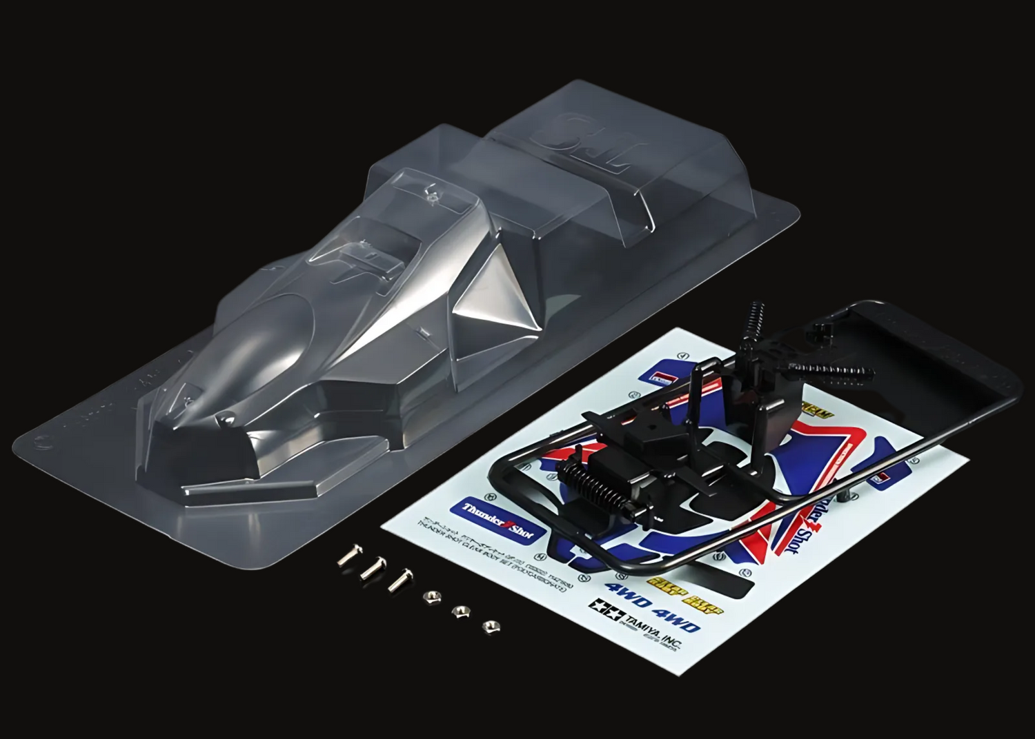 Explore our selection of Tamiya Mini 4WD body parts, including clear polycarbonate bodies, chassis, and decals. Designed for customization, durability, and optimal performance, perfect for building or upgrading your high-speed models.